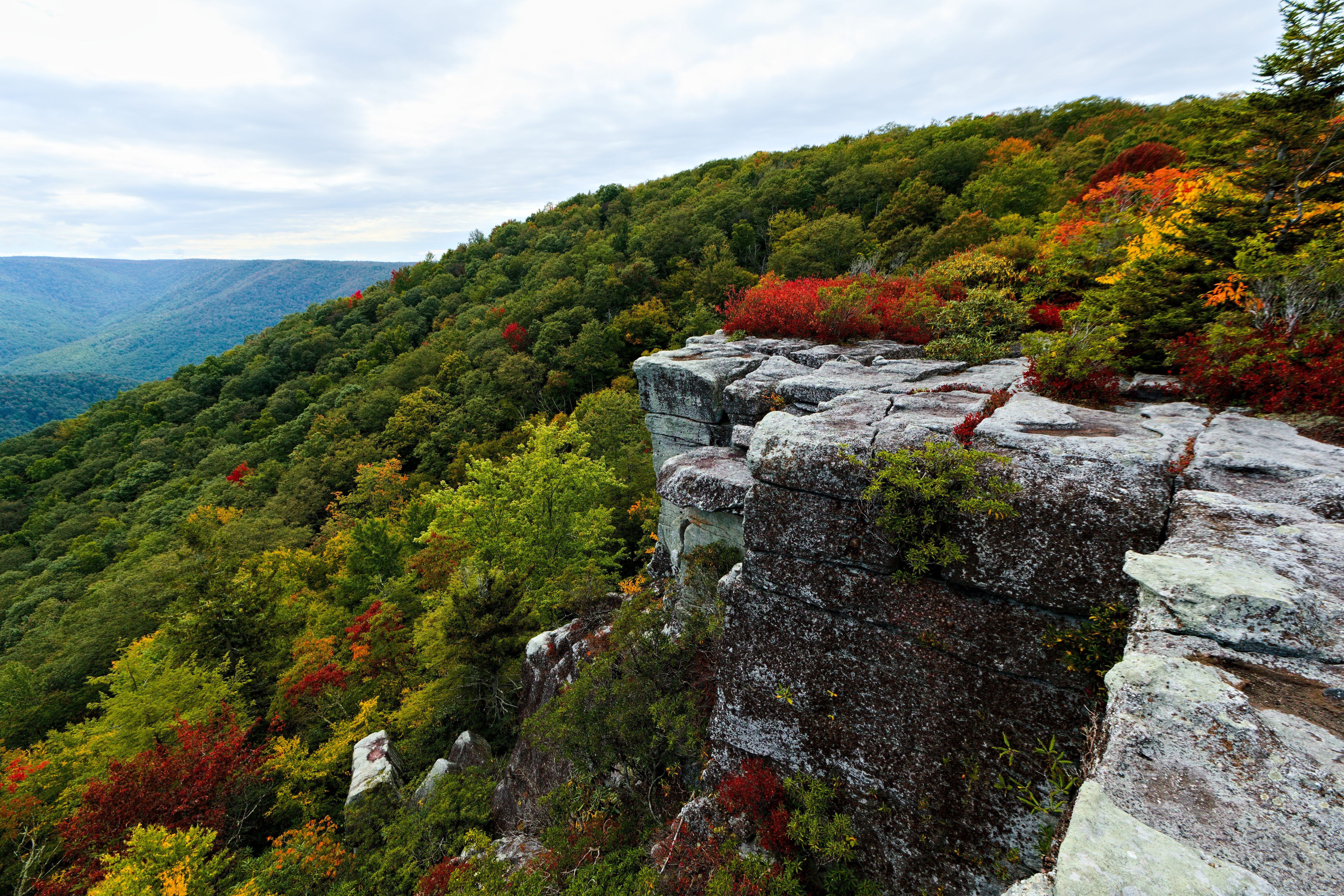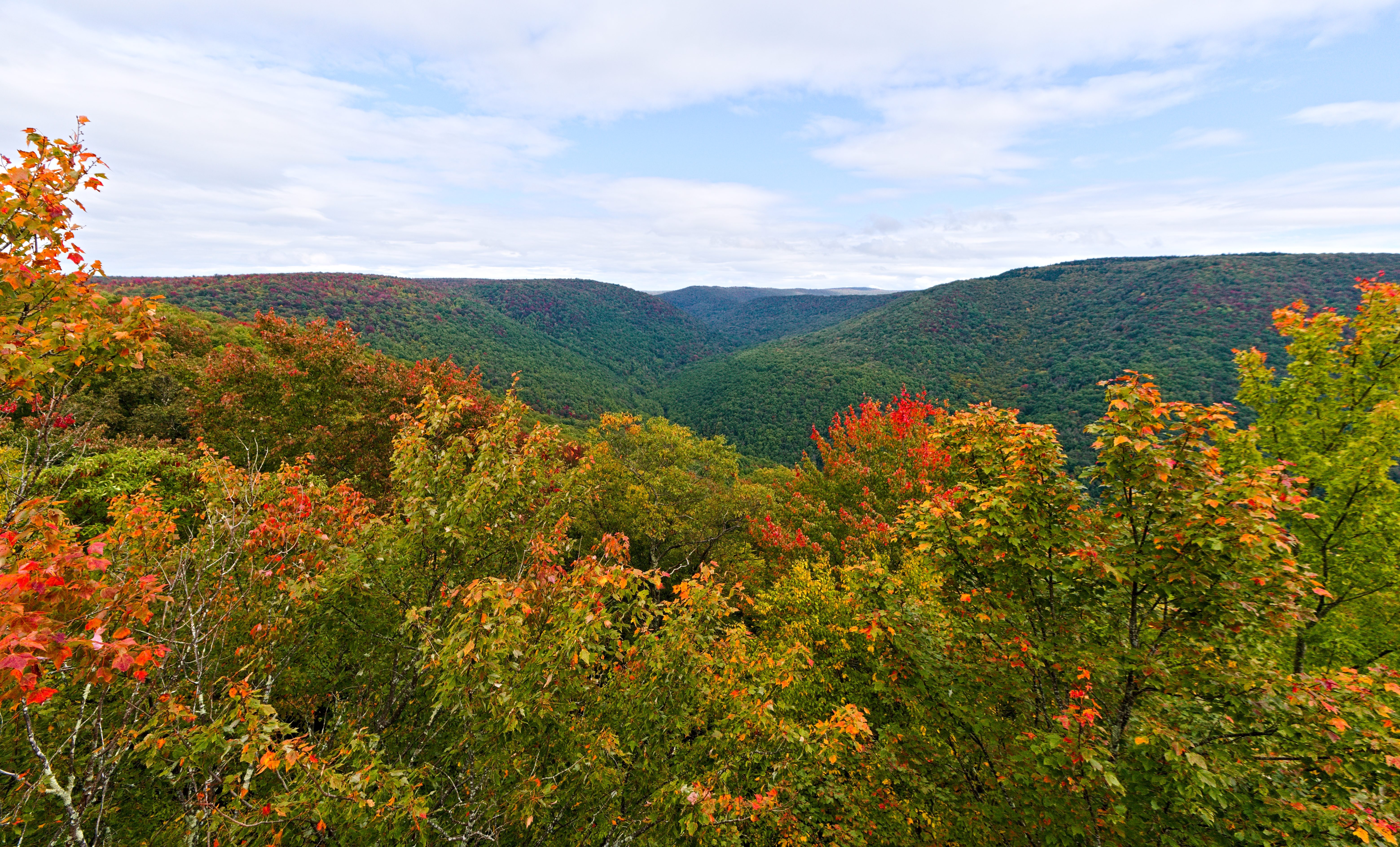 Hello again, this week I left my home state and adventured to almost heaven – West Virgina. I travailed three short trails, two at Blackwater Falls State Park and one in Monongahela National Forest. I started the day a bit earlier than usual, I woke up at 7 than was actually fast about getting on the road. As usual I brought my tripod for the waterfalls. As I drove into West Virgina, as obligatory, I played Country Roads when entering the state. Ironically the road was closer to a country road in Virgina and more of a freeway in West Virgina. After finishing the almost three hour drive, I arrived at Backwater Falls. I then went to the trail to the falls, or more accurately an extremely short path with a boardwalk. The falls were quite pretty and I went down the boardwalk to set up my tripod. Since it was a cloudy day, unlike last week, I was able to lower the shutter speed and achieve the luscious flowing water. See header photo. Here the trees where just starting to change with hints of red and orange flowing into the photo. After taking a few more photos of the falls I went to leave and as I was leaving I came across another photographer who was also bringing her tripod to take photos of the falls. She was a lady in her 50s and recently retired to spend more time taking photos. We had a good conversation about photography in general that lasted well over 15 minutes. After retracing the short 0.2 mile path, I returned to my car to drive to the other waterfall this park had. During the short drive I passed an overlook of the Blackwater river valley where I took some photos.